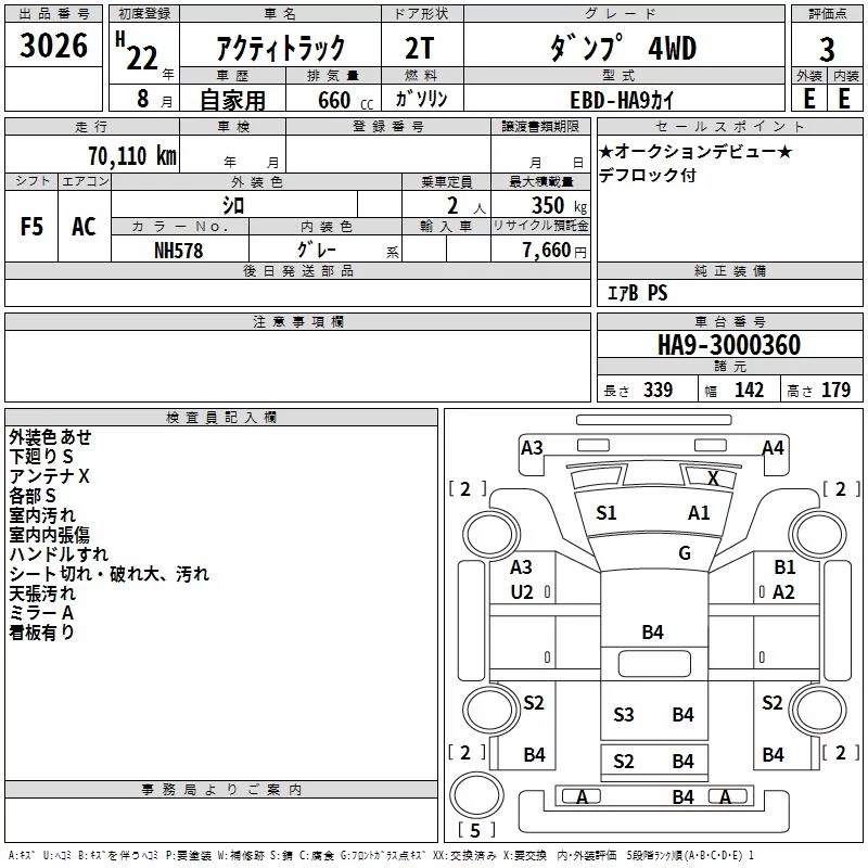Honda ACTY TRUCK с аукциона Японии TAA Kyushu лот № 3026