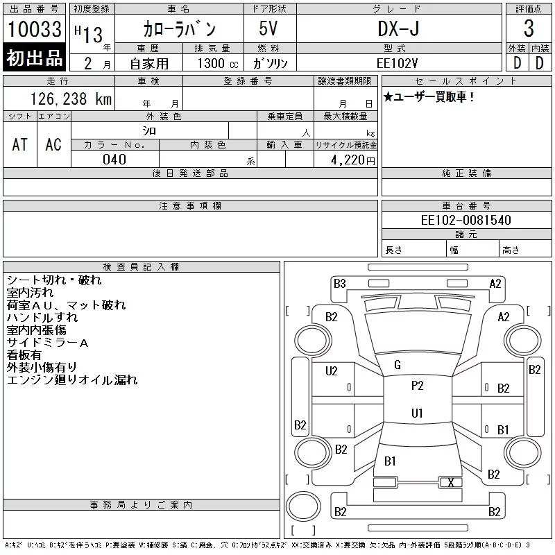 Toyota COROLLA VAN с аукциона Японии CAA Tokyo лот № 10033