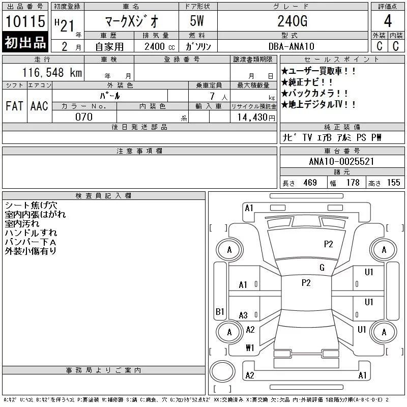 Toyota MARK X ZIO с аукциона Японии CAA Tokyo лот № 10115