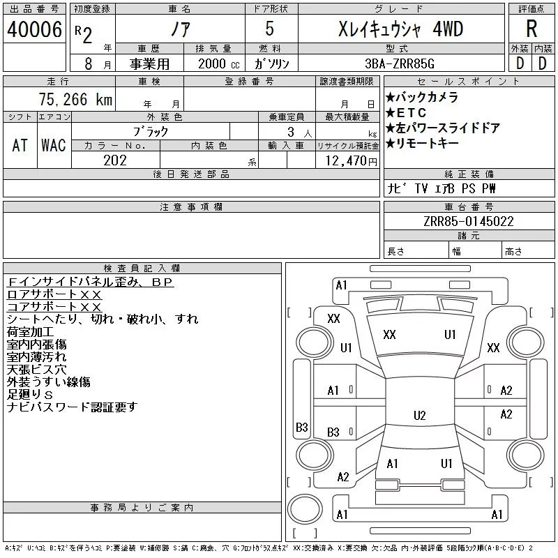 Toyota NOAH с аукциона Японии CAA Tokyo лот № 40006