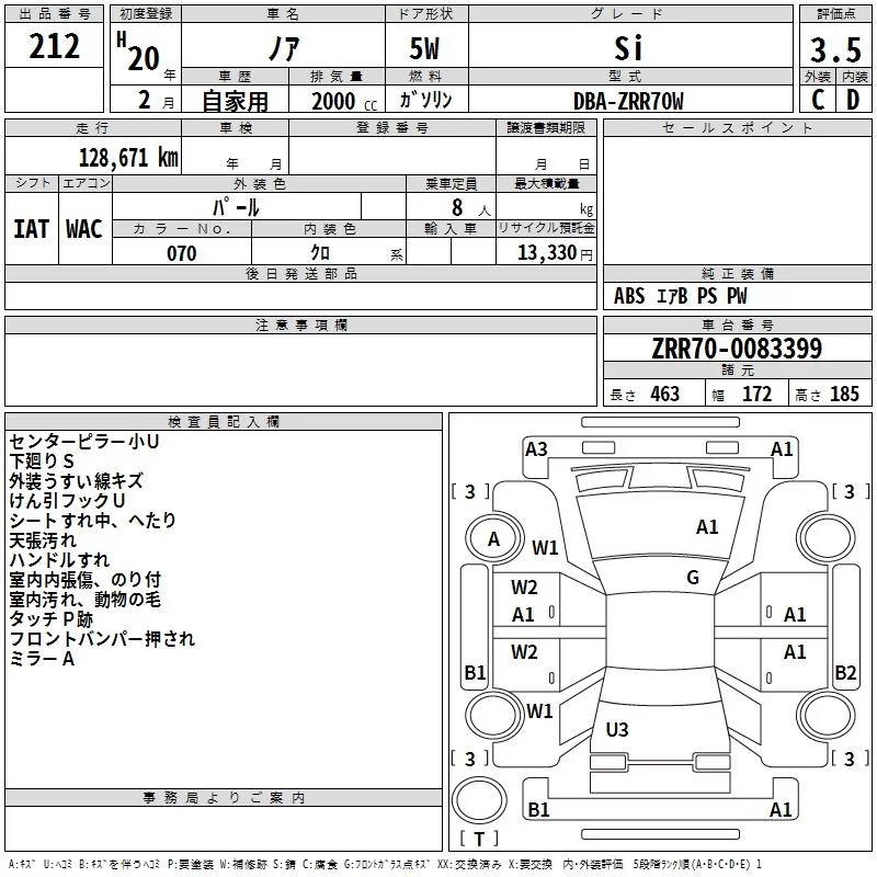 Toyota NOAH с аукциона Японии TAA Kyushu лот № 212