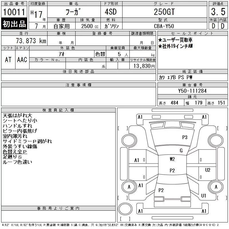 Nissan FUGA с аукциона Японии CAA Tokyo лот № 10011