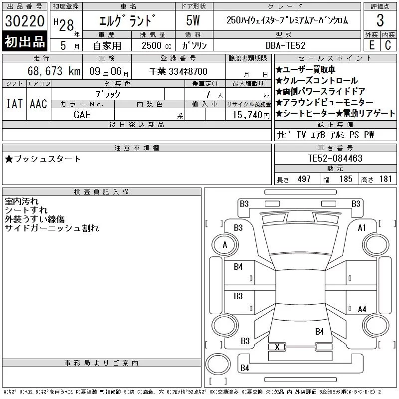 Nissan ELGRAND с аукциона Японии CAA Tokyo лот № 30220