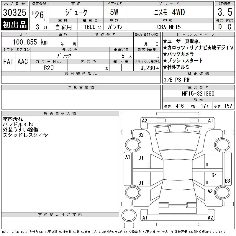 Nissan JUKE с аукциона Японии CAA Tokyo лот № 30325