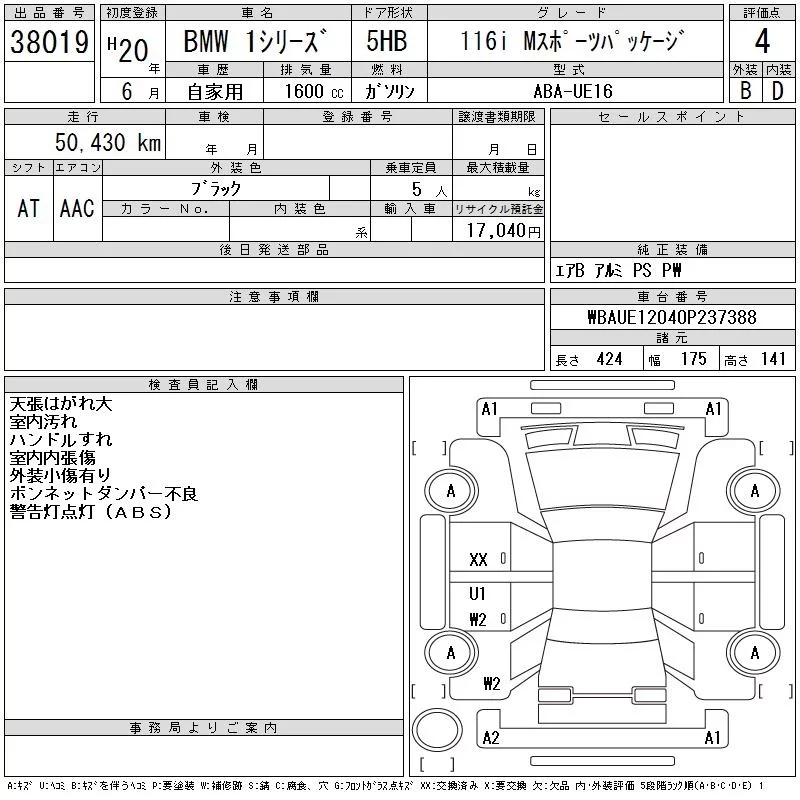 BMW 1-Series с аукциона Японии CAA Tokyo лот № 38019