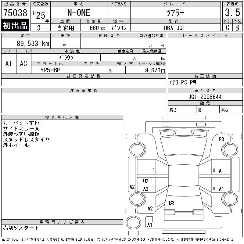 Honda N ONE с аукциона Японии CAA Gifu лот № 75038