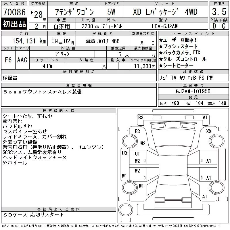 Mazda ATENZA WAGON с аукциона Японии CAA Gifu лот № 70086