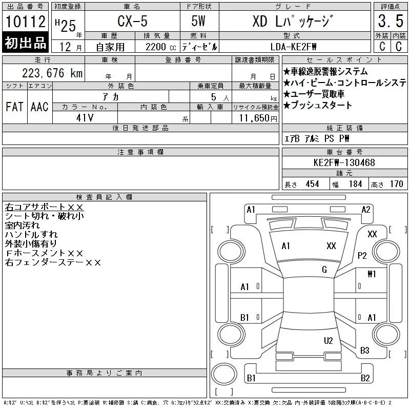 Mazda CX-5 с аукциона Японии CAA Tokyo лот № 10112