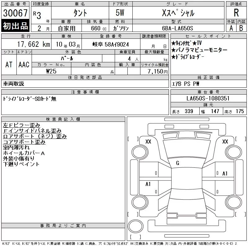 Daihatsu TANTO с аукциона Японии CAA Gifu лот № 30067