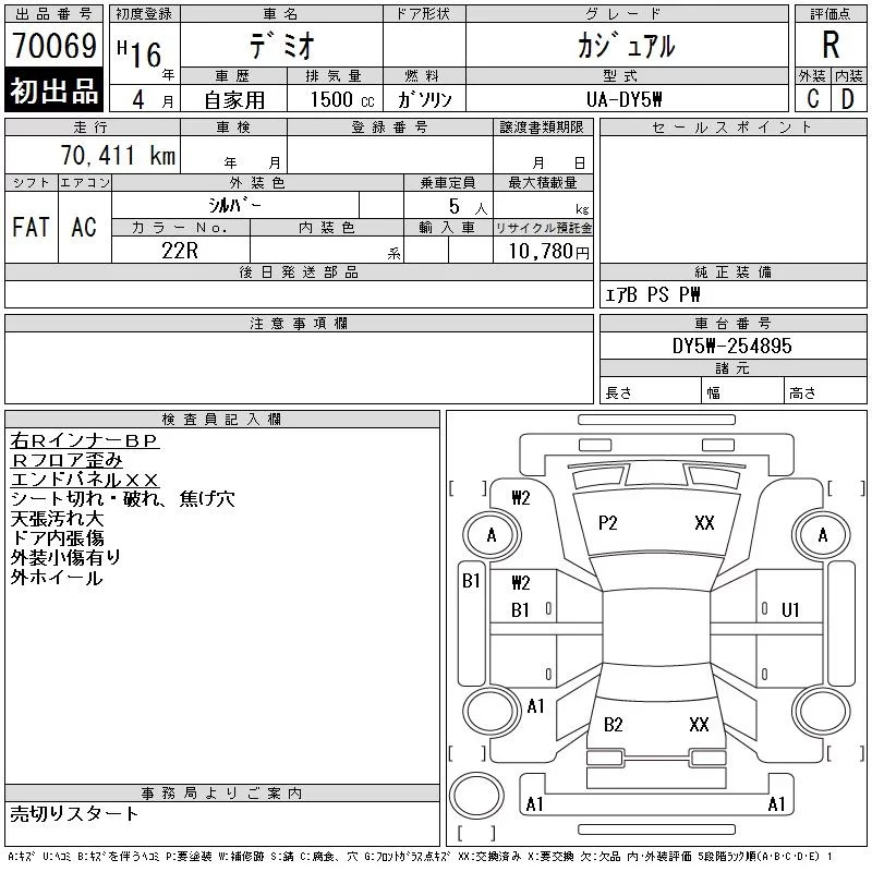 Mazda DEMIO с аукциона Японии CAA Gifu лот № 70069