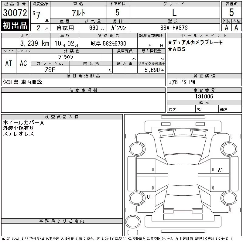 Suzuki ALTO с аукциона Японии CAA Gifu лот № 30072
