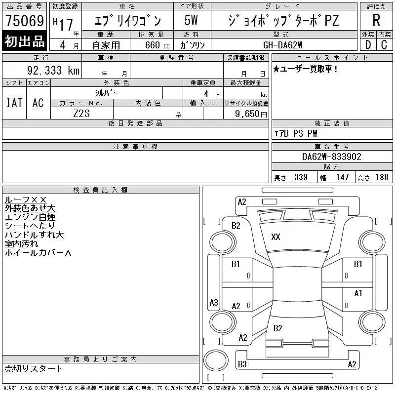 Suzuki EVERY WAGON с аукциона Японии CAA Gifu лот № 75069