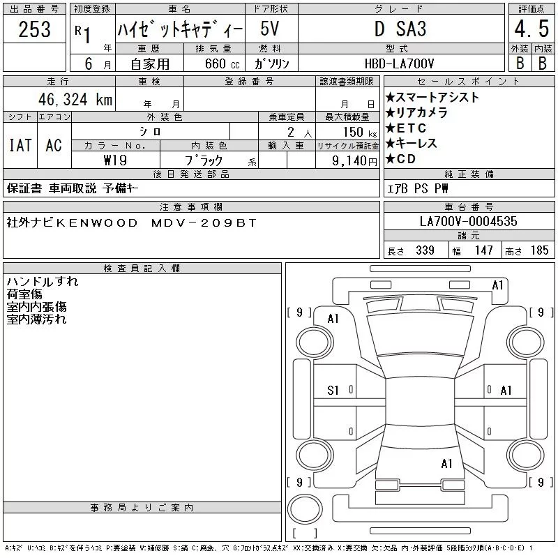 Daihatsu HIJET CADDIE с аукциона Японии CAA Tokyo лот № 253