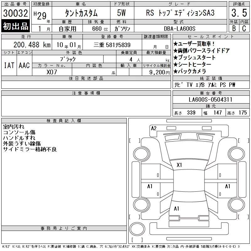 Daihatsu TANTO с аукциона Японии CAA Gifu лот № 30032