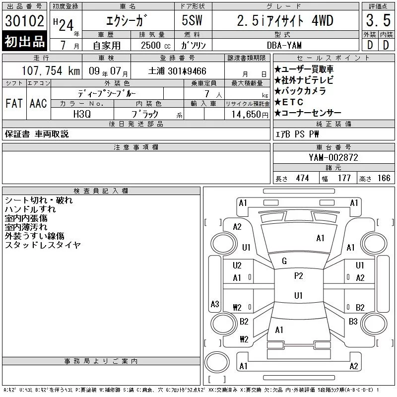 Subaru EXIGA с аукциона Японии CAA Tokyo лот № 30102