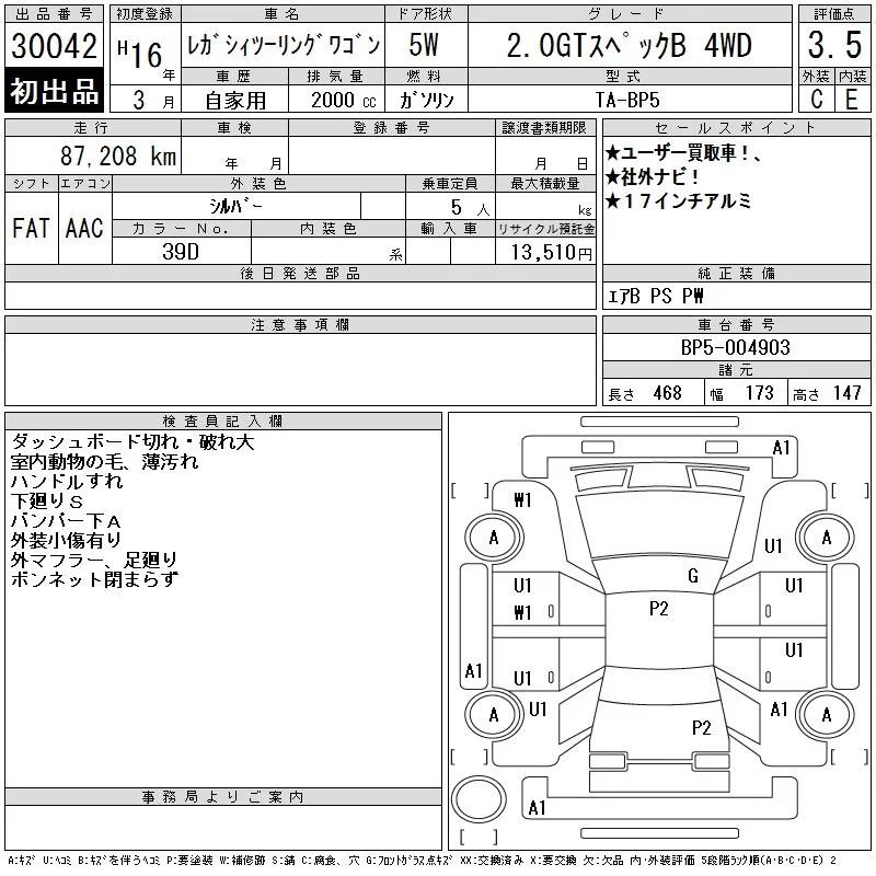 Subaru LEGACY с аукциона Японии CAA Tokyo лот № 30042