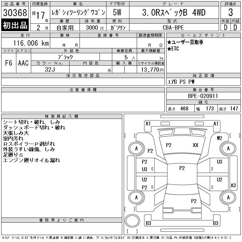 Subaru LEGACY с аукциона Японии CAA Tokyo лот № 30368