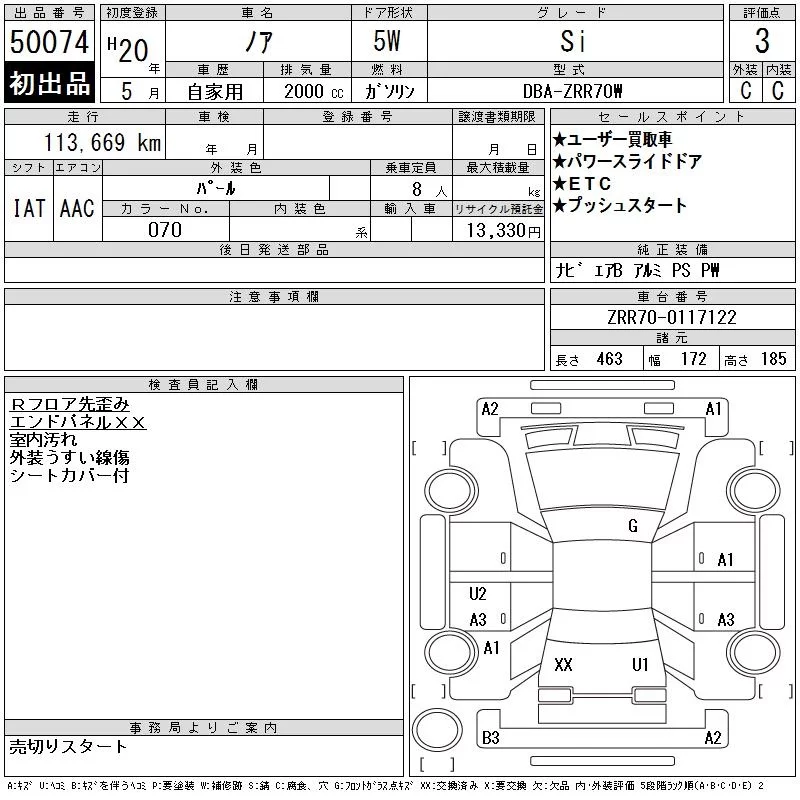 Toyota NOAH с аукциона Японии CAA Tokyo лот № 50074