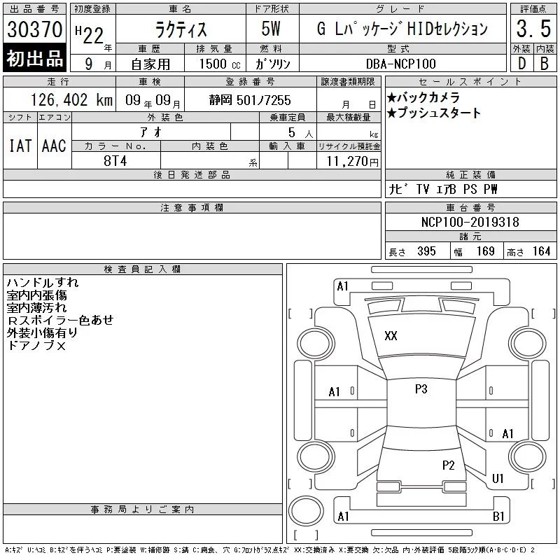 Toyota RACTIS с аукциона Японии CAA Tokyo лот № 30370