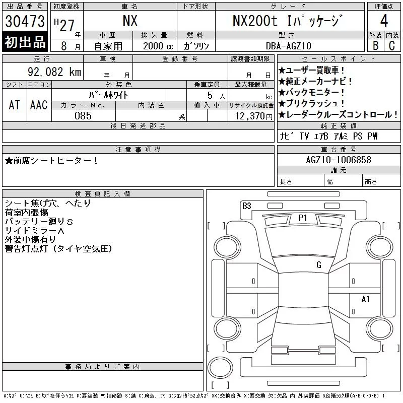 Lexus NX с аукциона Японии CAA Tokyo лот № 30473