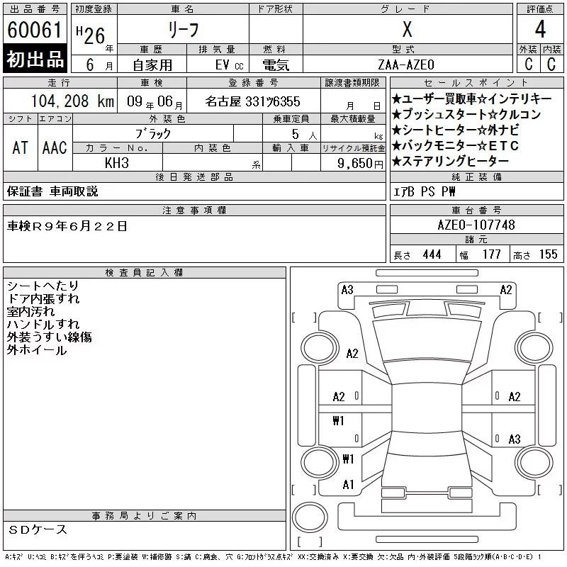 Nissan LEAF с аукциона Японии CAA Gifu лот № 60061