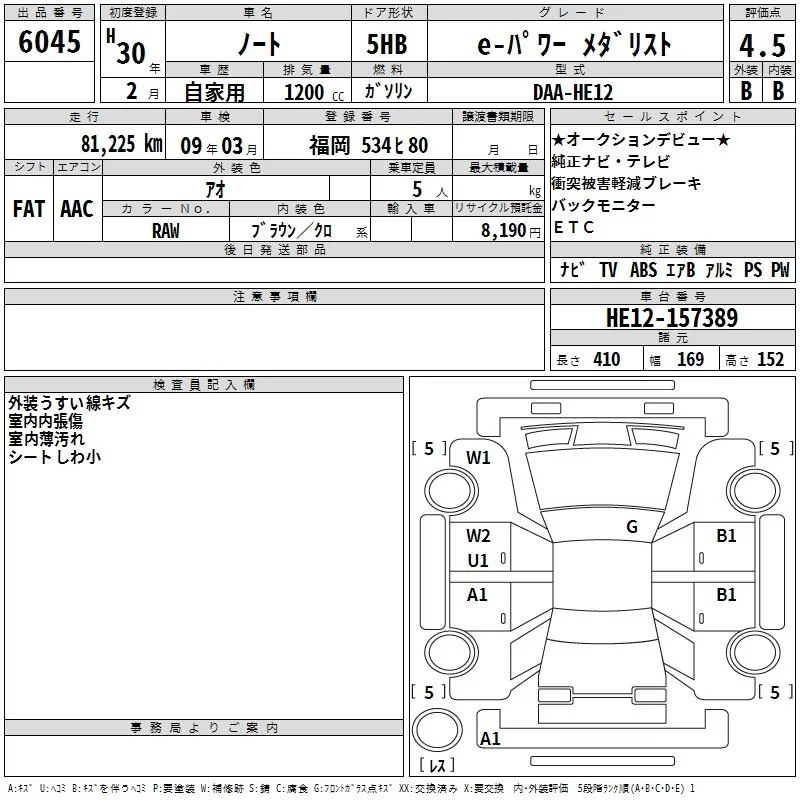 Nissan NOTE с аукциона Японии TAA Kyushu лот № 6045