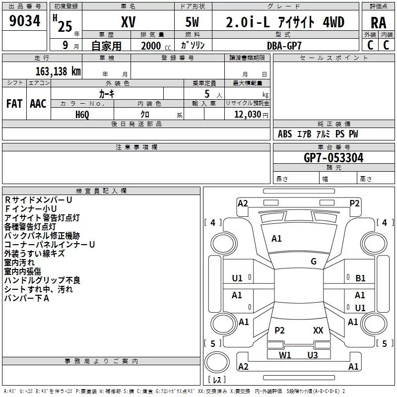 Subaru XV с аукциона Японии TAA Kyushu лот № 9034