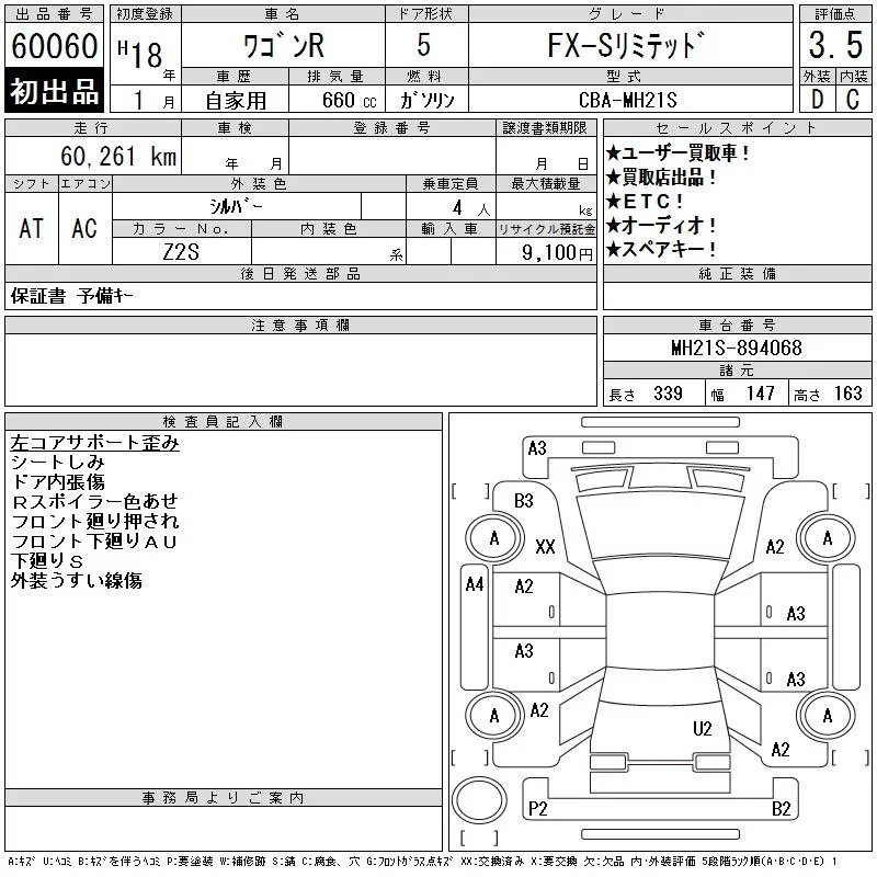 Suzuki WAGON R с аукциона Японии CAA Gifu лот № 60060
