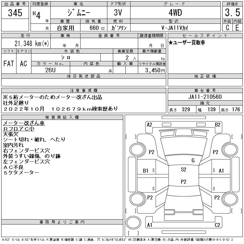 Suzuki JIMNY с аукциона Японии CAA Tokyo лот № 345
