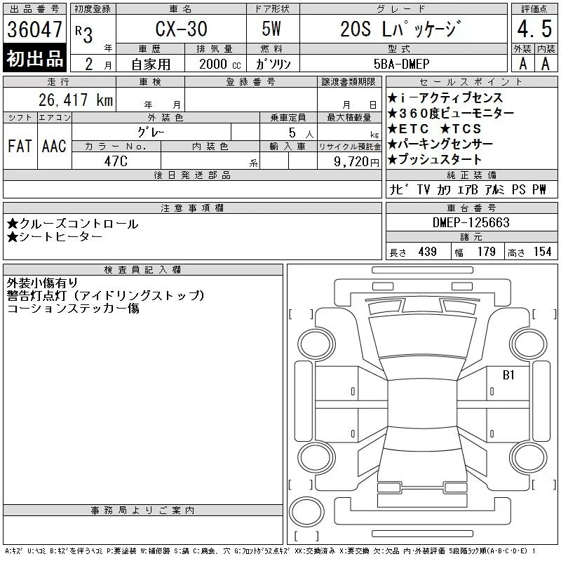 Mazda CX-30 с аукциона Японии CAA Tokyo лот № 36047