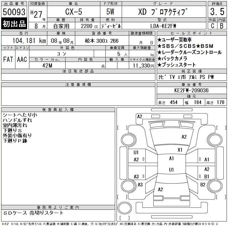 Mazda CX-5 с аукциона Японии CAA Tokyo лот № 50093