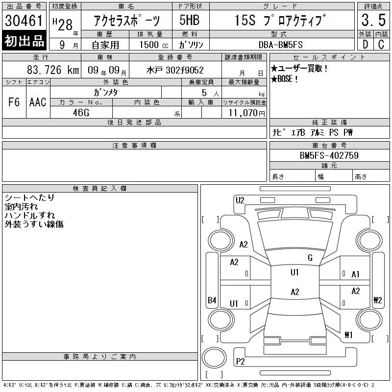 Mazda AXELA с аукциона Японии CAA Tokyo лот № 30461