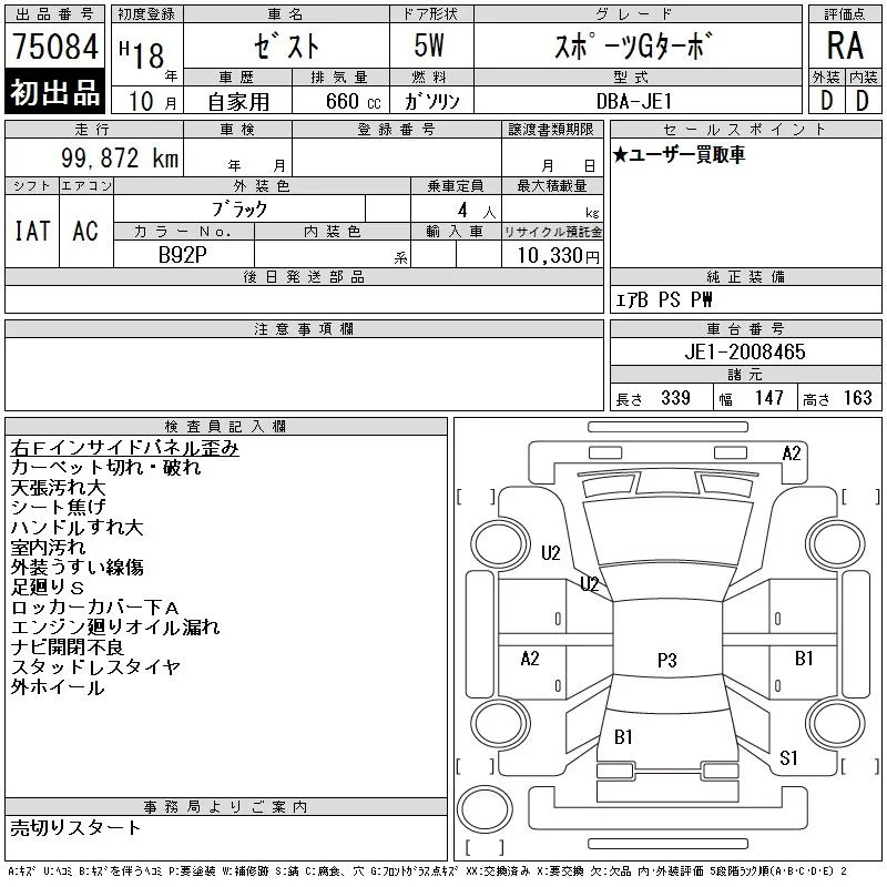 Honda ZEST с аукциона Японии CAA Gifu лот № 75084