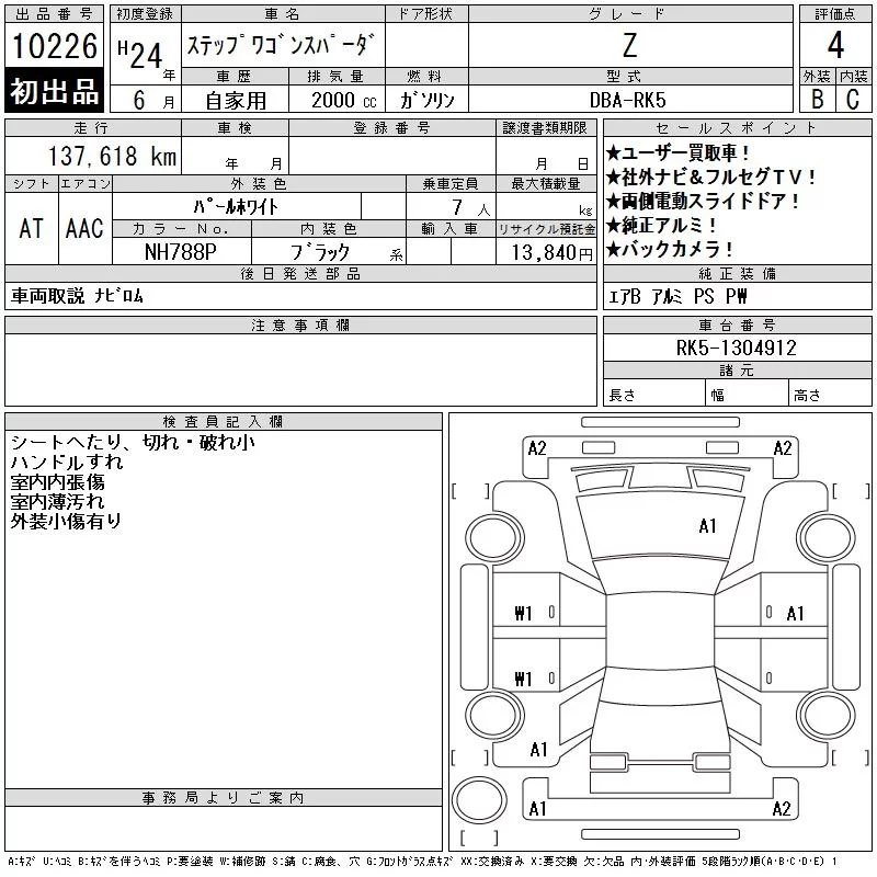 Honda STEP WAGON с аукциона Японии CAA Tokyo лот № 10226