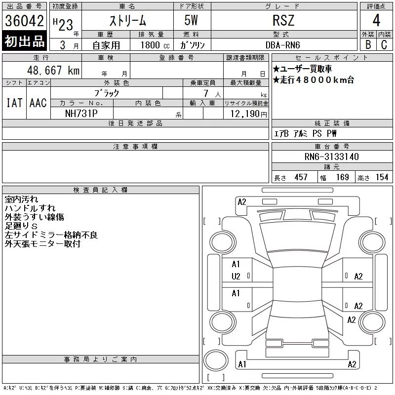 Honda STREAM с аукциона Японии CAA Tokyo лот № 36042