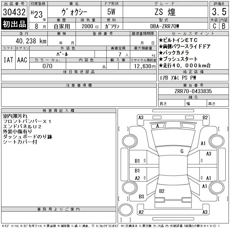 Toyota VOXY с аукциона Японии CAA Tokyo лот № 30432
