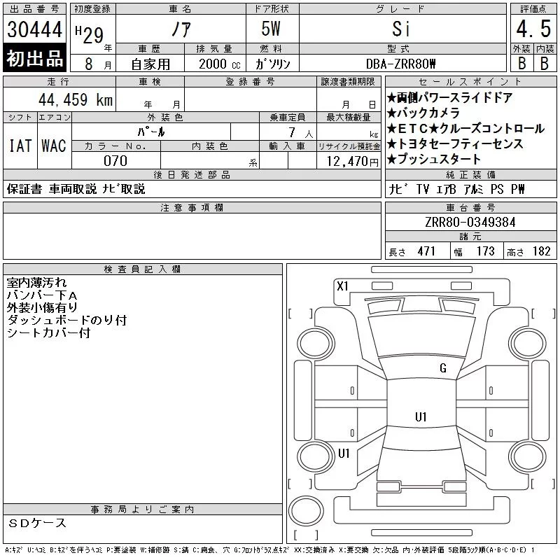 Toyota NOAH с аукциона Японии CAA Tokyo лот № 30444
