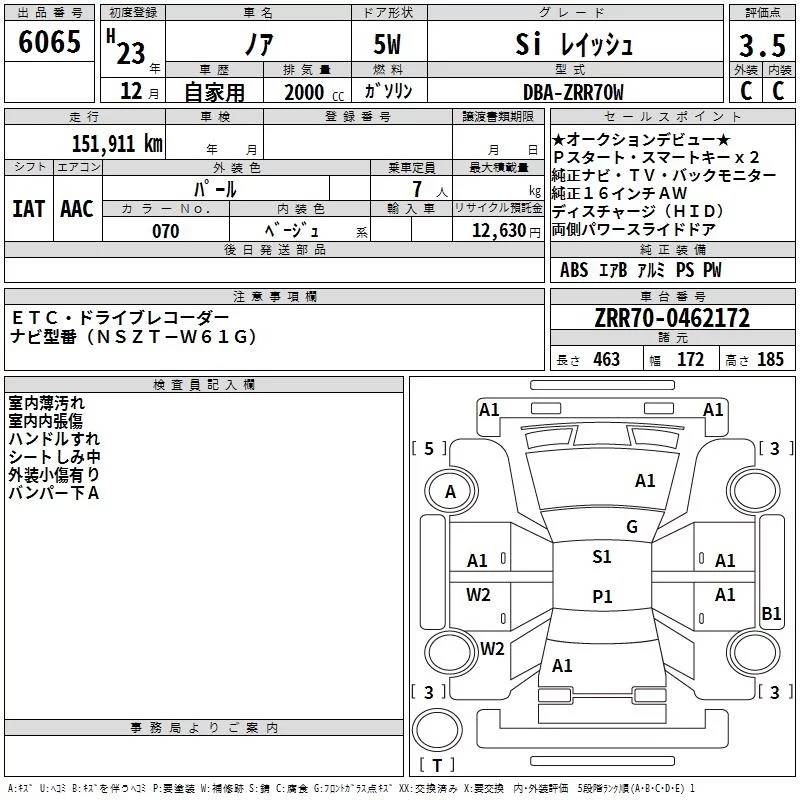 Toyota NOAH с аукциона Японии TAA Kyushu лот № 6065