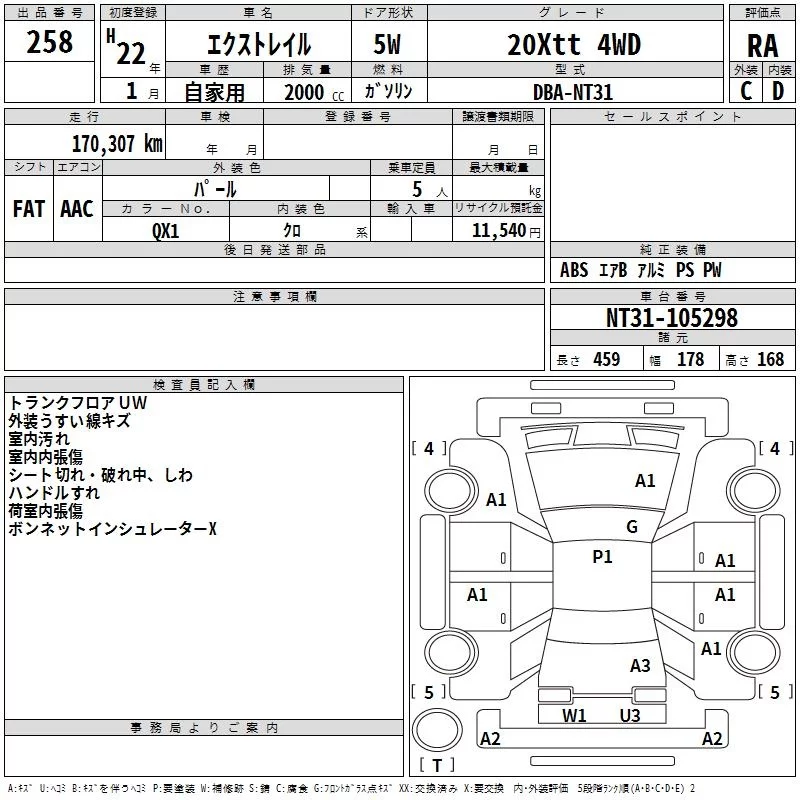 Nissan X-TRAIL с аукциона Японии TAA Kyushu лот № 258
