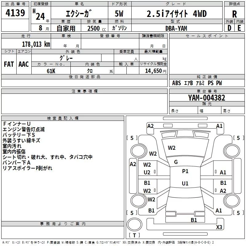 Subaru EXIGA с аукциона Японии TAA Kyushu лот № 4139