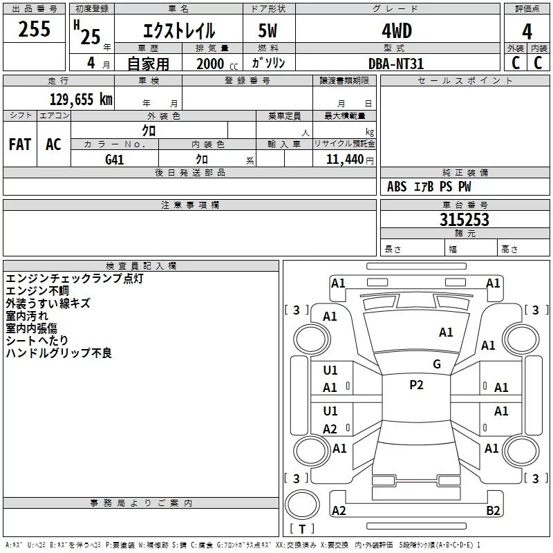 Nissan X-TRAIL с аукциона Японии TAA Kyushu лот № 255