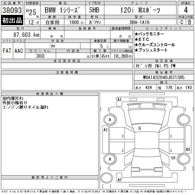 BMW 1-Series с аукциона Японии CAA Tokyo лот № 38093