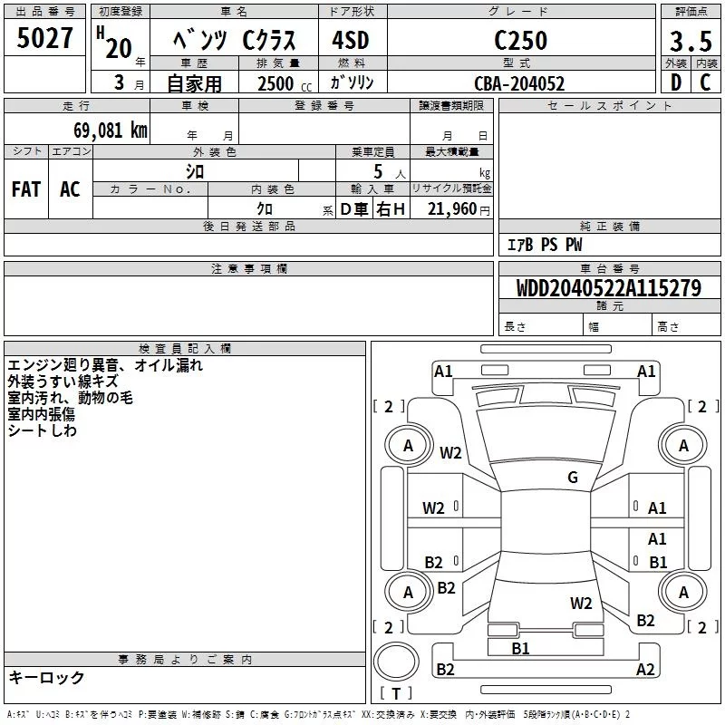 Mercedes-Benz C CLASS с аукциона Японии TAA Kyushu лот № 5027