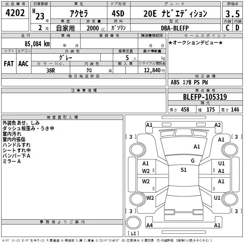 Mazda AXELA с аукциона Японии TAA Kyushu лот № 4202