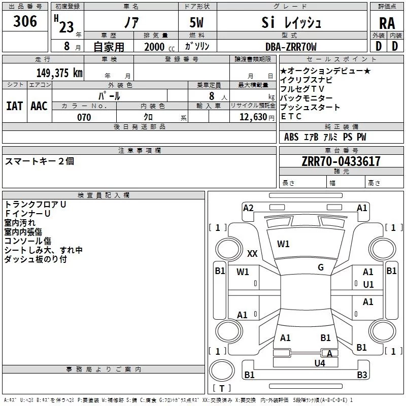 Toyota NOAH с аукциона Японии TAA Kyushu лот № 306