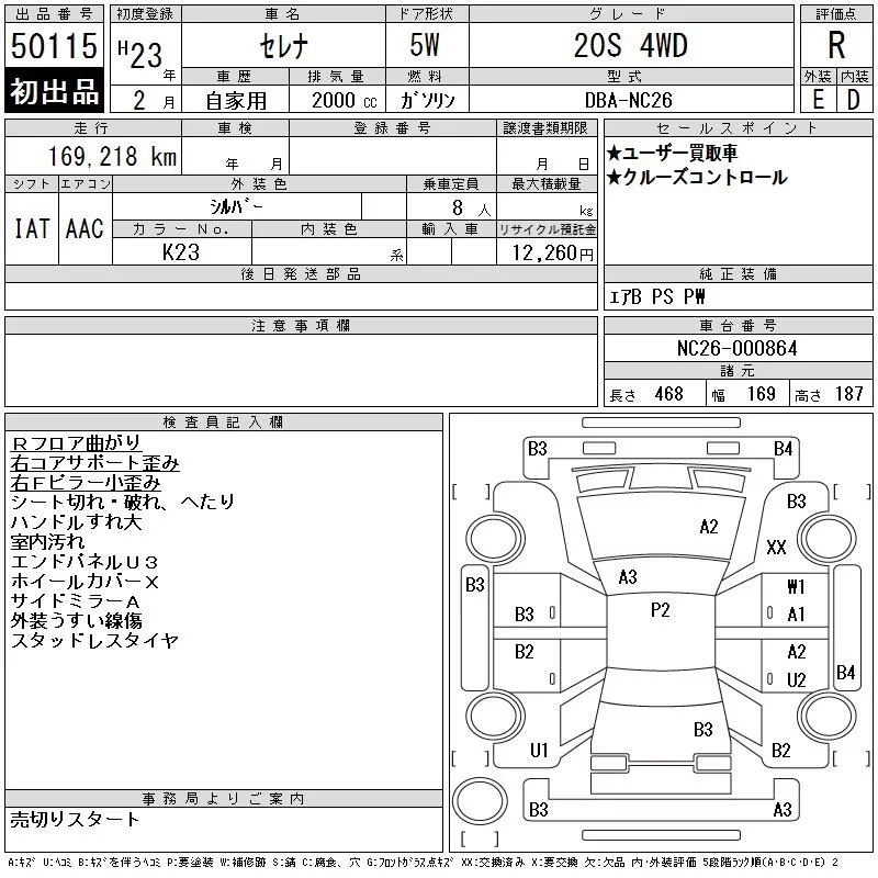 Nissan SERENA с аукциона Японии CAA Tokyo лот № 50115