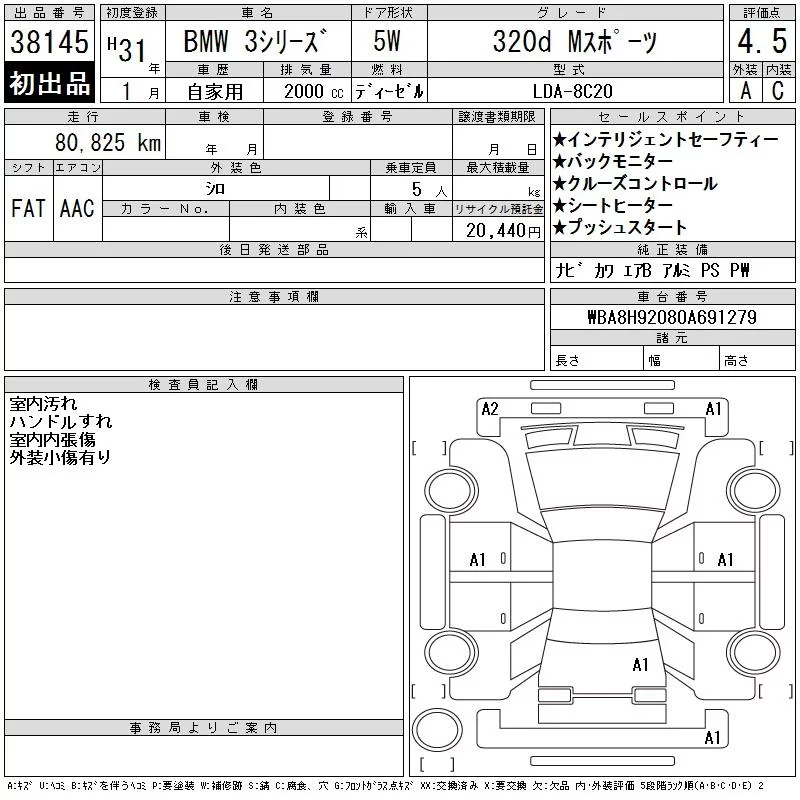 BMW 3-Series с аукциона Японии CAA Tokyo лот № 38145