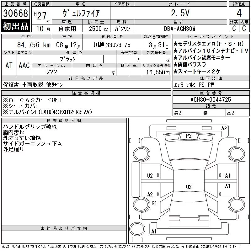 Toyota VELLFIRE с аукциона Японии CAA Tokyo лот № 30668