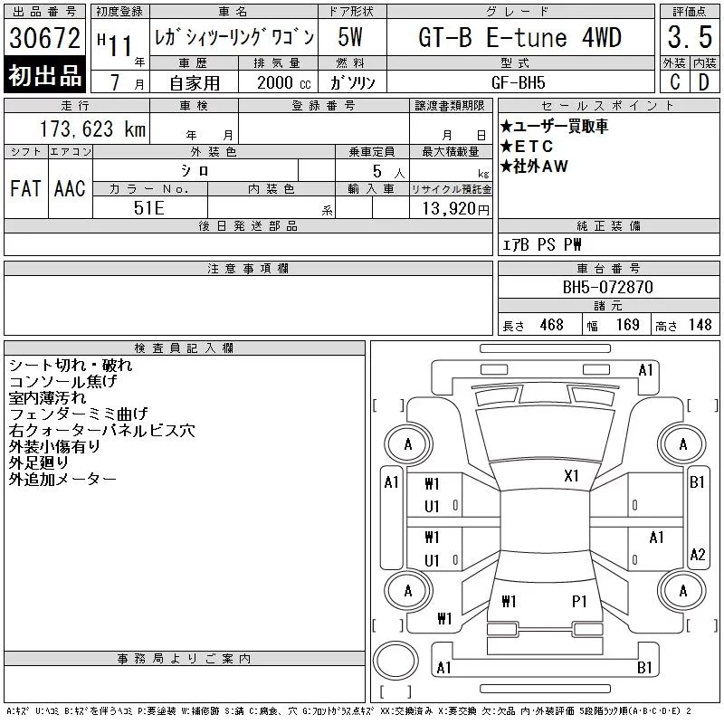 Subaru LEGACY с аукциона Японии CAA Tokyo лот № 30672