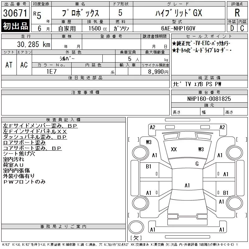 Toyota PROBOX с аукциона Японии CAA Tokyo лот № 30671